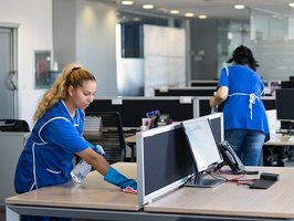 Wir bieten eine umfassende Büroreinigung, um Ihre Arbeitsumgebung sauber und ordentlich zu halten.